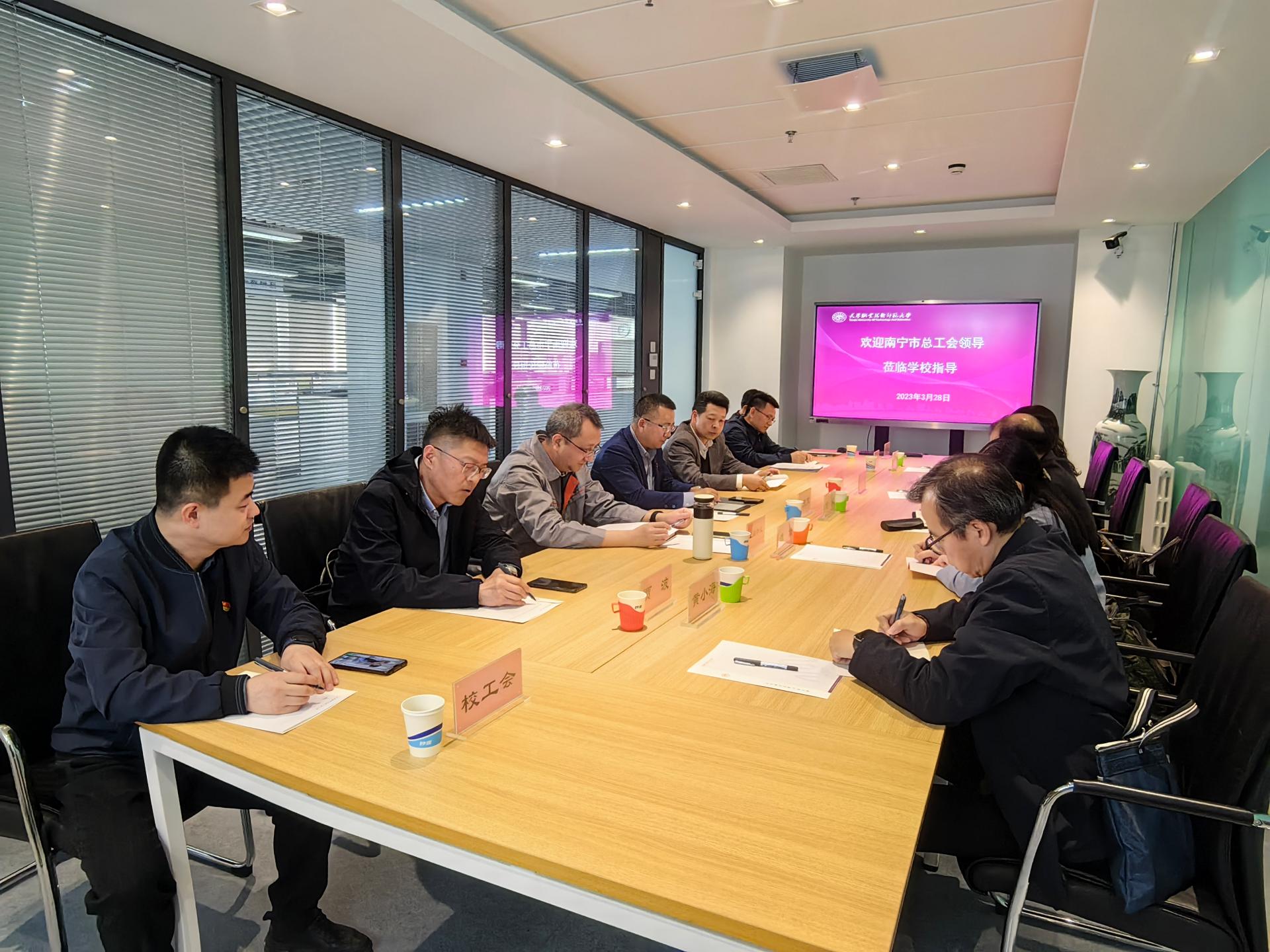 王克文对学校近几年取得成绩高度赞扬,他表示,天职师大广大教职工奋斗在教学一线,为学校人才培养、科学研究和管理服务做出了突出贡献。伦建就对标南宁市重点产业、重点行业与天职师大合作培养急需人才,以及产教融合、校企合作方面与教务处、科研处等部门负责同志进行了深入交流。